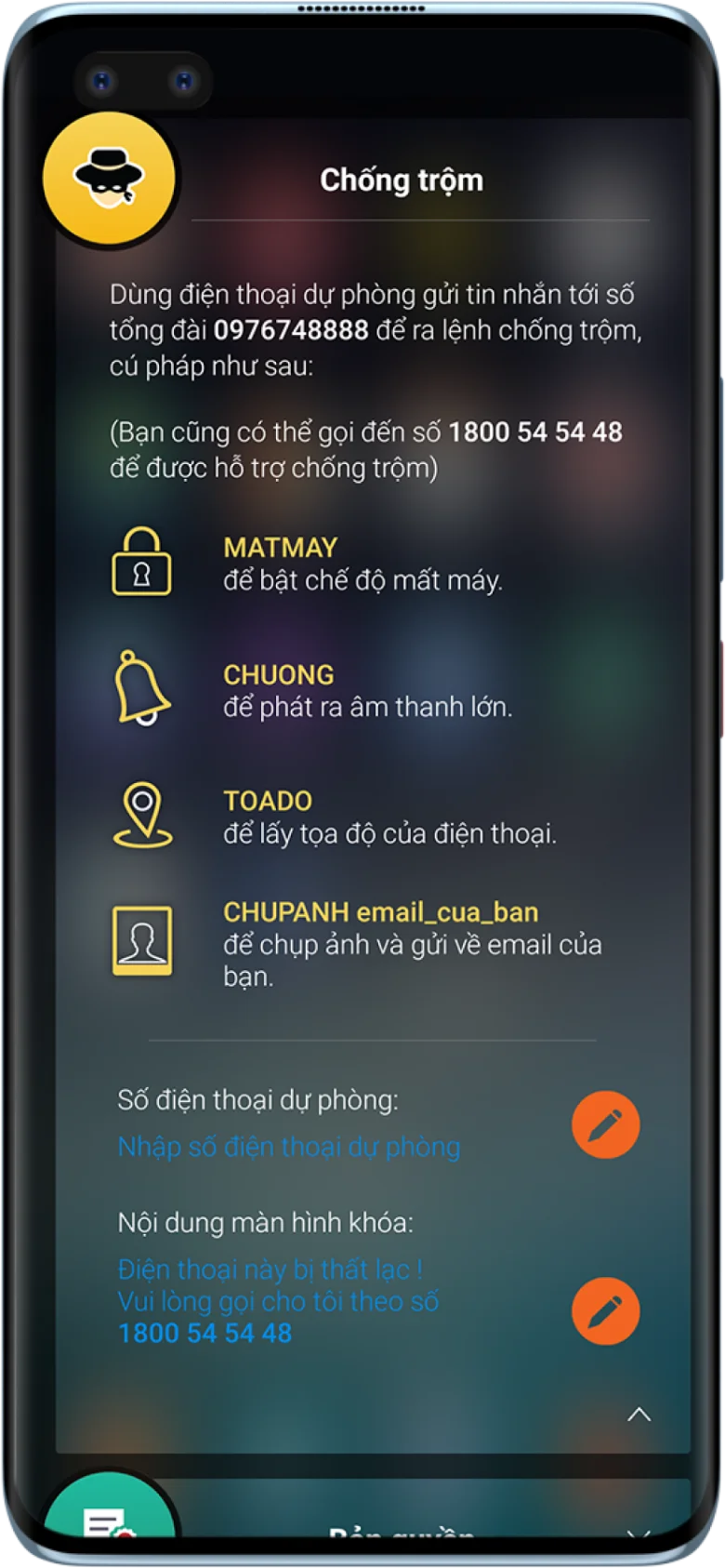 năng bảo mật cao cấp: Diệt virus, Chống trộm, Chống nghe lén, Giám