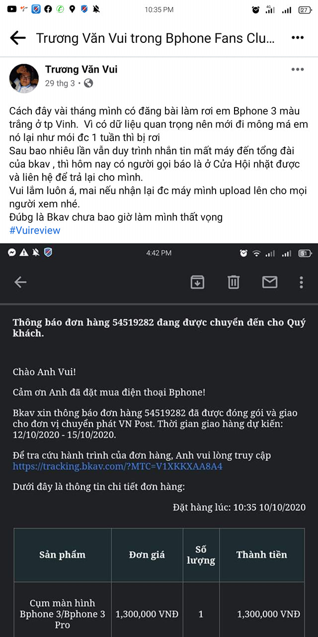 ...Đợt rồi mình gửi lên Bstore Gò Vấp chung với con Bphone 3 ( B3 thay mặt sau và đã nhận trước lễ 30/4).